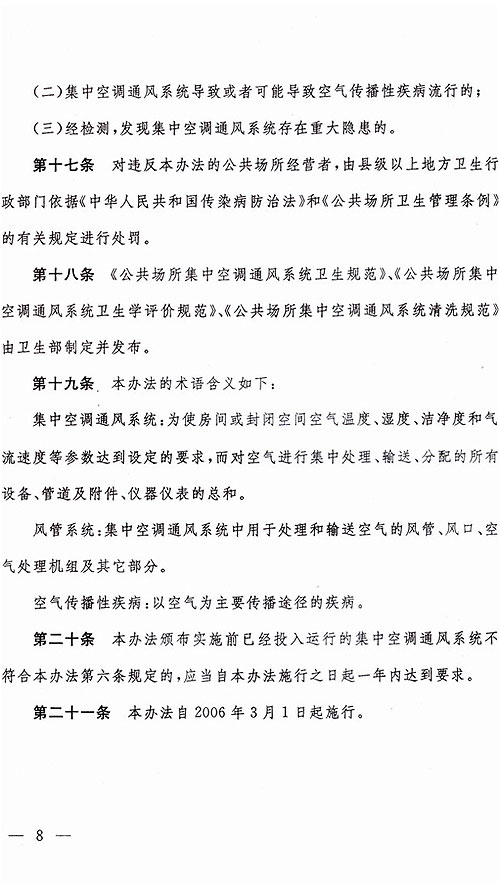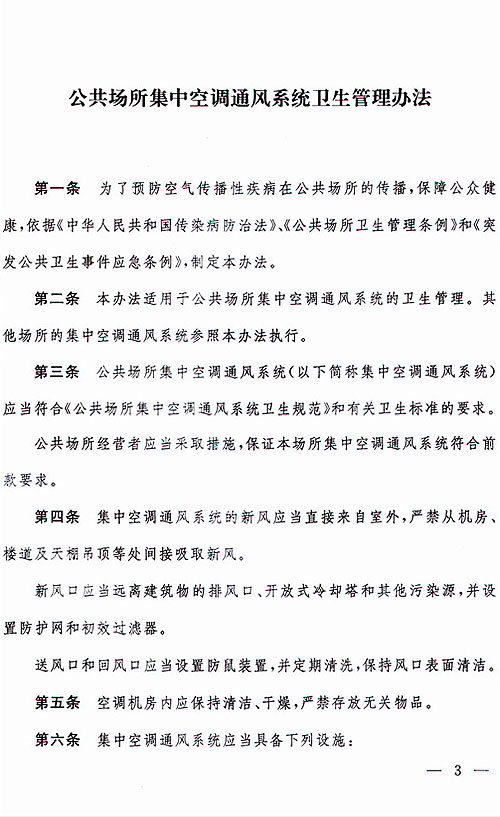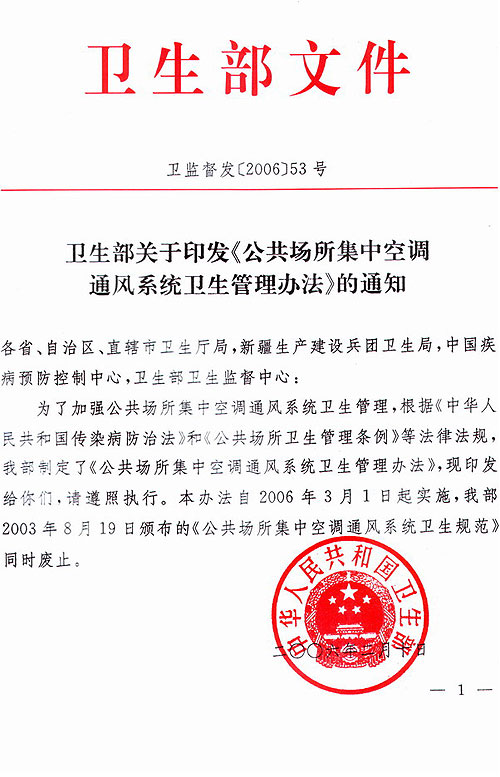 衛生部關(guān)于印發(fā)<<公共場(chǎng)所集中空調通風(fēng)系統衛生管理辦法>>的通知